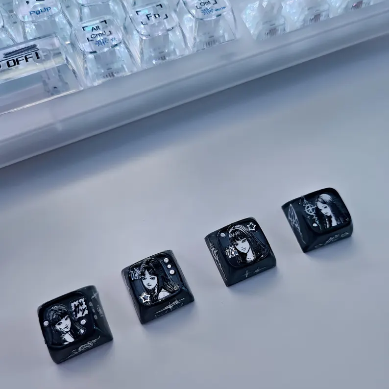 🖤 Inspired by Junji Ito's amazing horror Manga and anime adaptations, these Tomie Kawakami handmade artisan keycaps are a great addition for your mechanical keyboard ⌨️